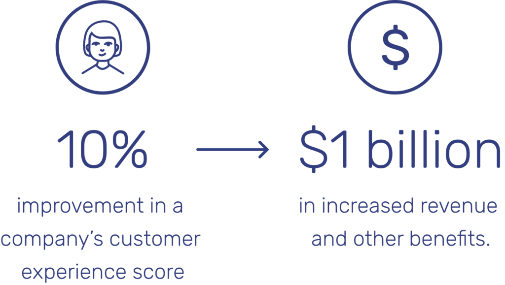 One Forrester report found that the economic benefits of customer loyalty are huge, sumizing that a 10% improvement in a company’s customer experience score can translate into more than $1 billion in increased revenue and other benefits.