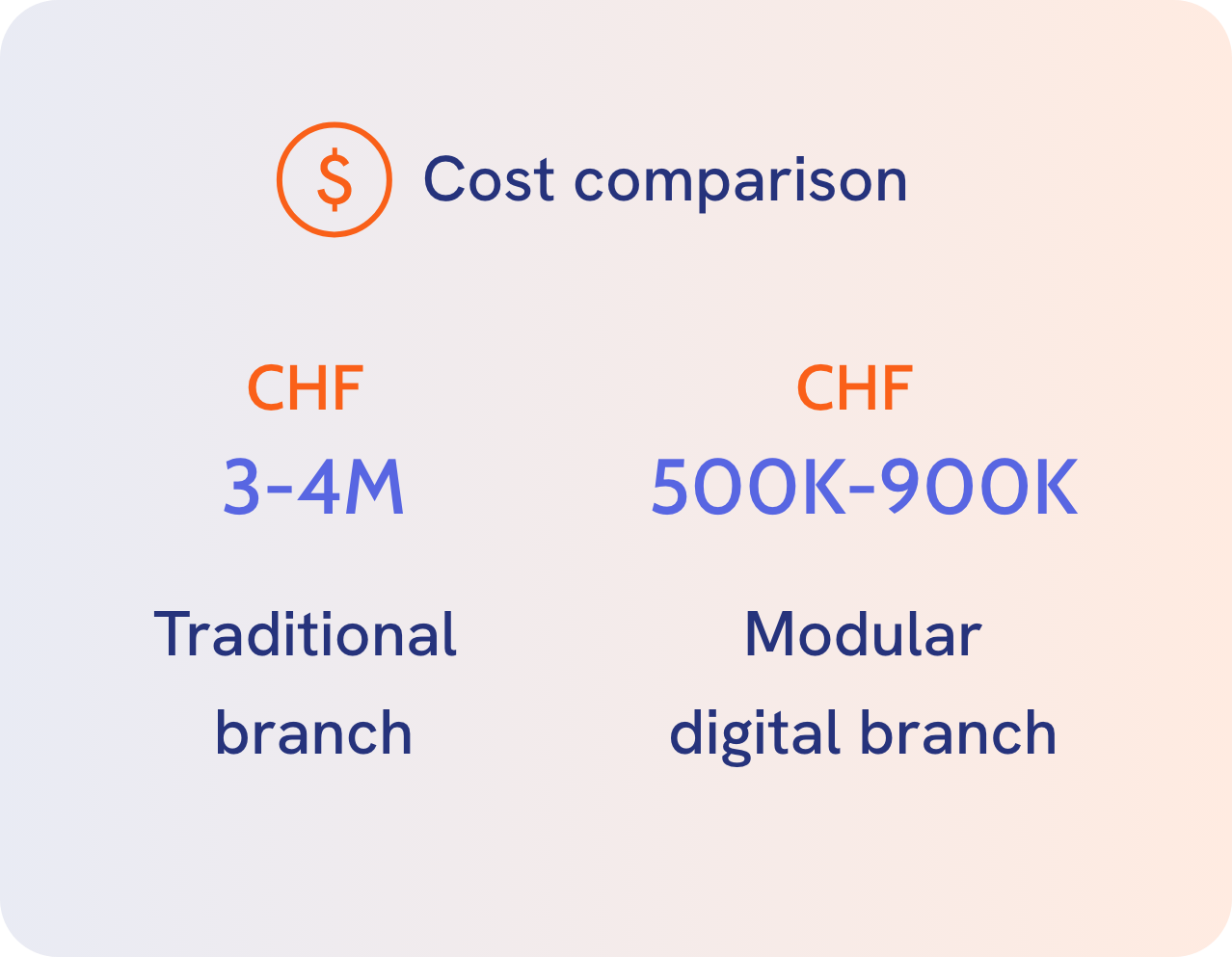 For the setup, the modular system allowed them to reduce the cost from around CHF 3,000,000–4,000,000 for traditional branches to CHF 500,000–900,000 for the new ones.