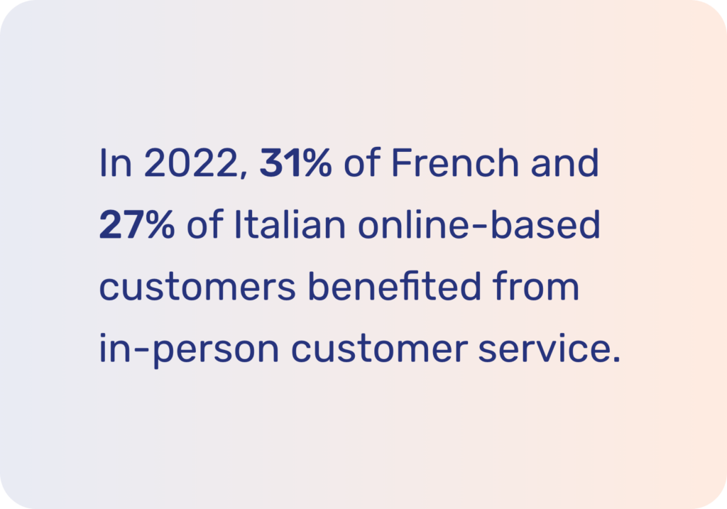 In France and Italy, studies show that 31% of French and 27% of Italian customers who primarily operate online did benefit from in-person customer service in 2022.