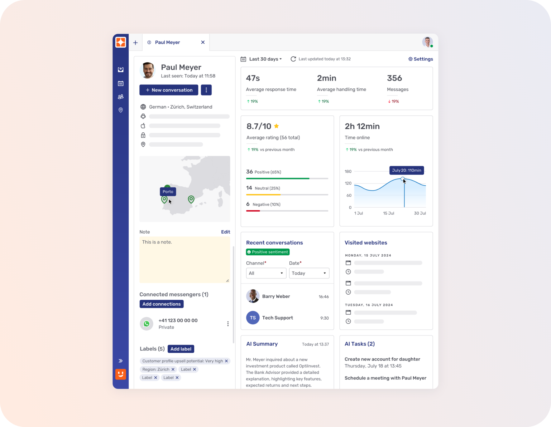 Automated processes can be initiated directly from client engagement conversations in predefined situations, such as next steps after an investment proposal confirmation or automated ID verification with associated recordkeeping.