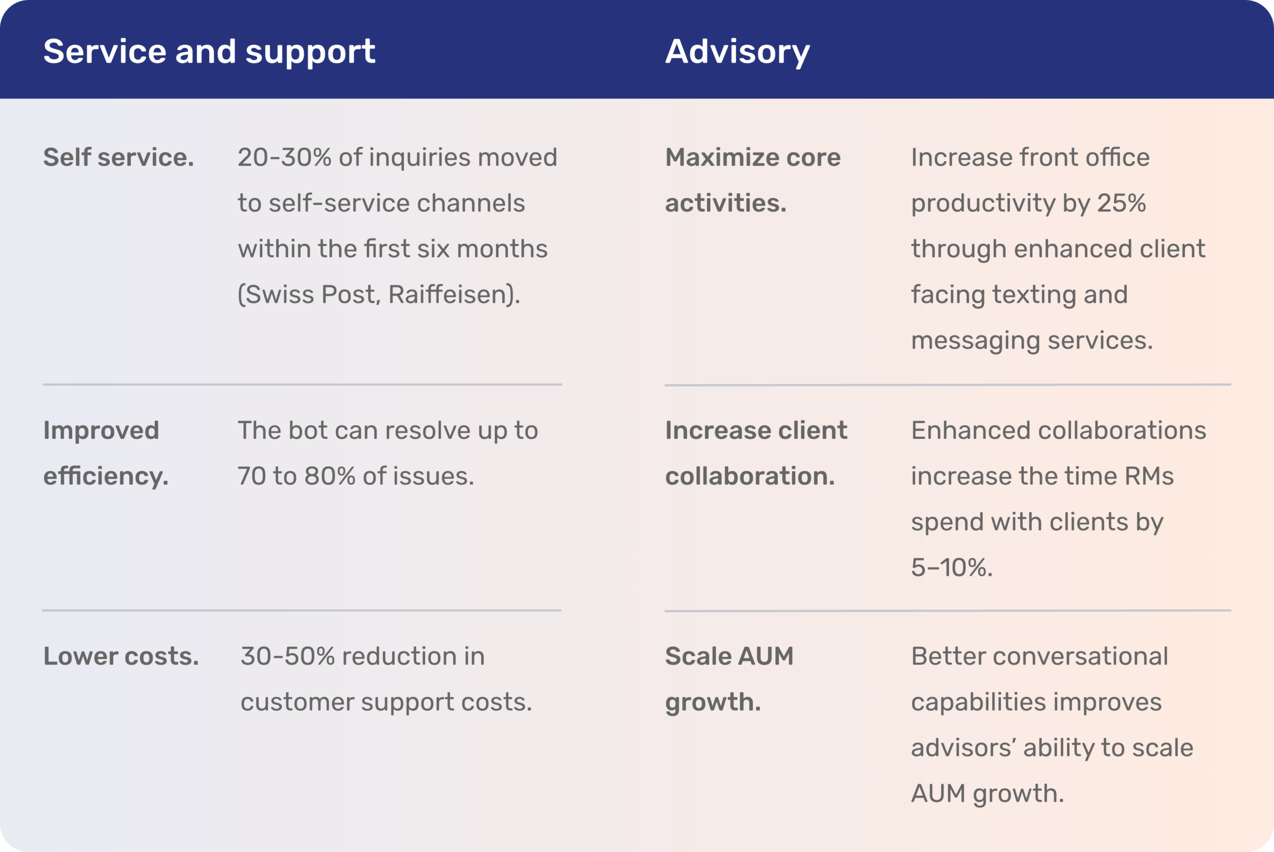 What does this mean in service, support, and advisory use cases for the financial industry?