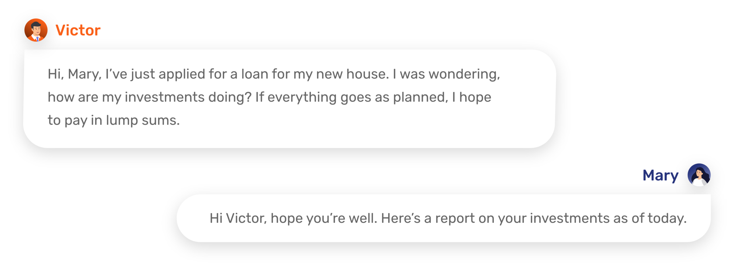 With the mortgage progressing, Victor wants to see how his other assets are doing. He decides to contact his wealth manager via a Secure Messenger app.