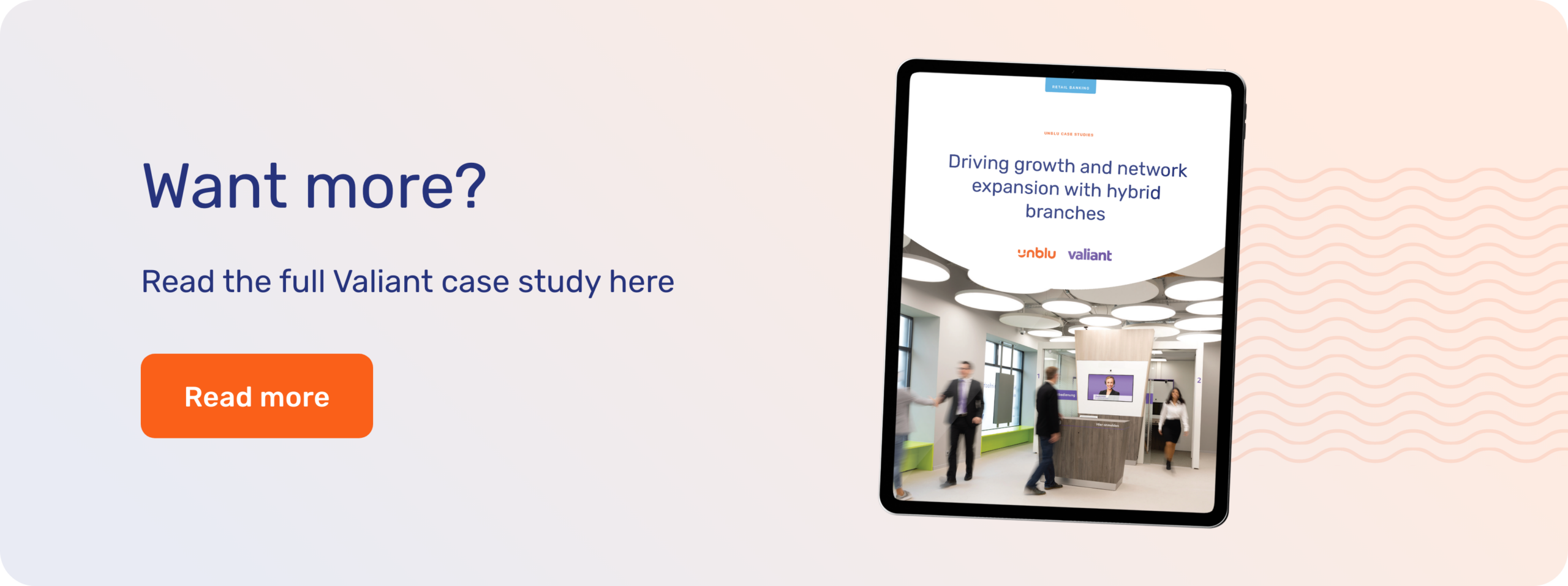 The bank incorporated Unblu Branch into 60 Valiant branches in Switzerland, which is a virtual reception and complementary remote tools that allows one agent to serve up to seven branches in real time.