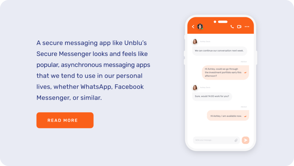 It is in this context that secure messaging apps become extremely important as they are the only way to offer the smooth, convenient experience that clients genuinely want. Unlike online meetings, mobile app messaging is a low-effort alternative that facilitates easy, back-and-forth conversation. This makes it easy for clients to fit in conversations with their advisors between other business activities.