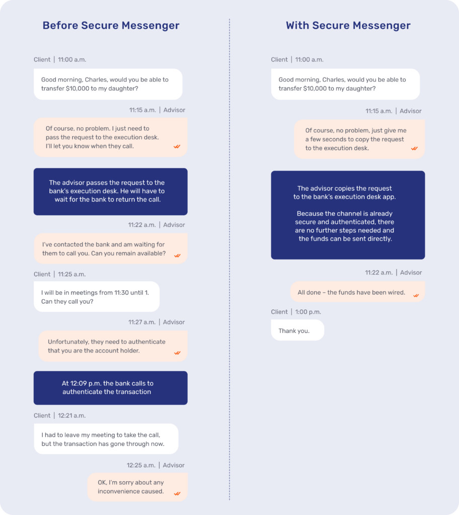 This sample client interaction shows how an advisor can provide a more streamlined experience for everyday interactions.