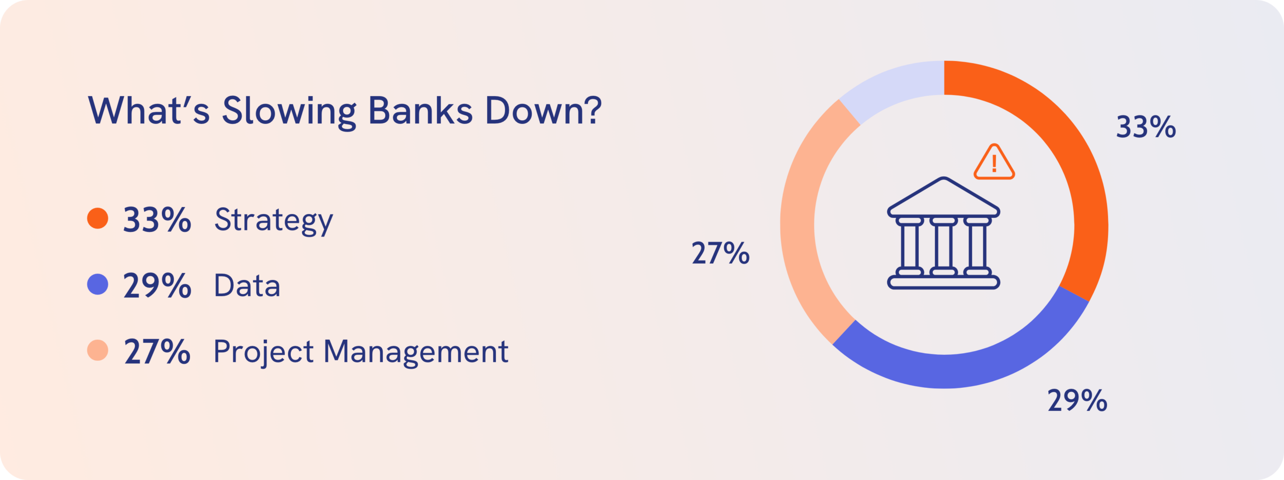 The reason for the lack of progression is challenges surrounding the strategy, with 33% claiming that this is holding them back, alongside 29% and 27% of respondents who say that data and project management are affecting progress.