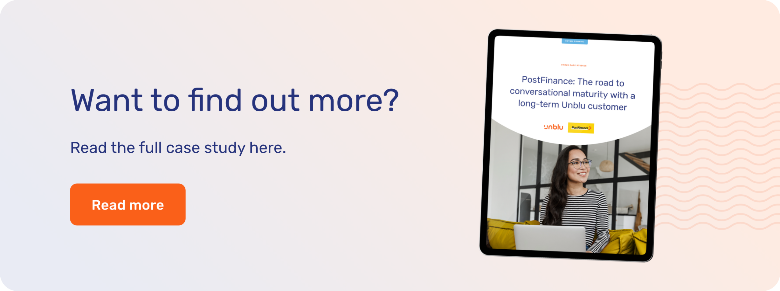 Unblu offers a robust solution that blurs the lines between digital and in-person experiences. Our Unblu Spark platform allows banking services to provide a consistent omnichannel customer experience that boosts customer loyalty and improves customer retention rates.