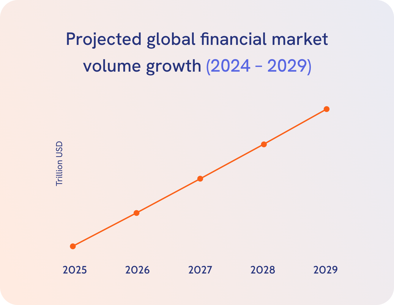 In fact, an annual growth rate of 1,94% resulting in 181,60 trillion is predicted by 2029 according to statistics. Within this, financial advisory is seen to be “the dominant player in this market,” with a projected financial market volume of $165.10 trillion in 2025.