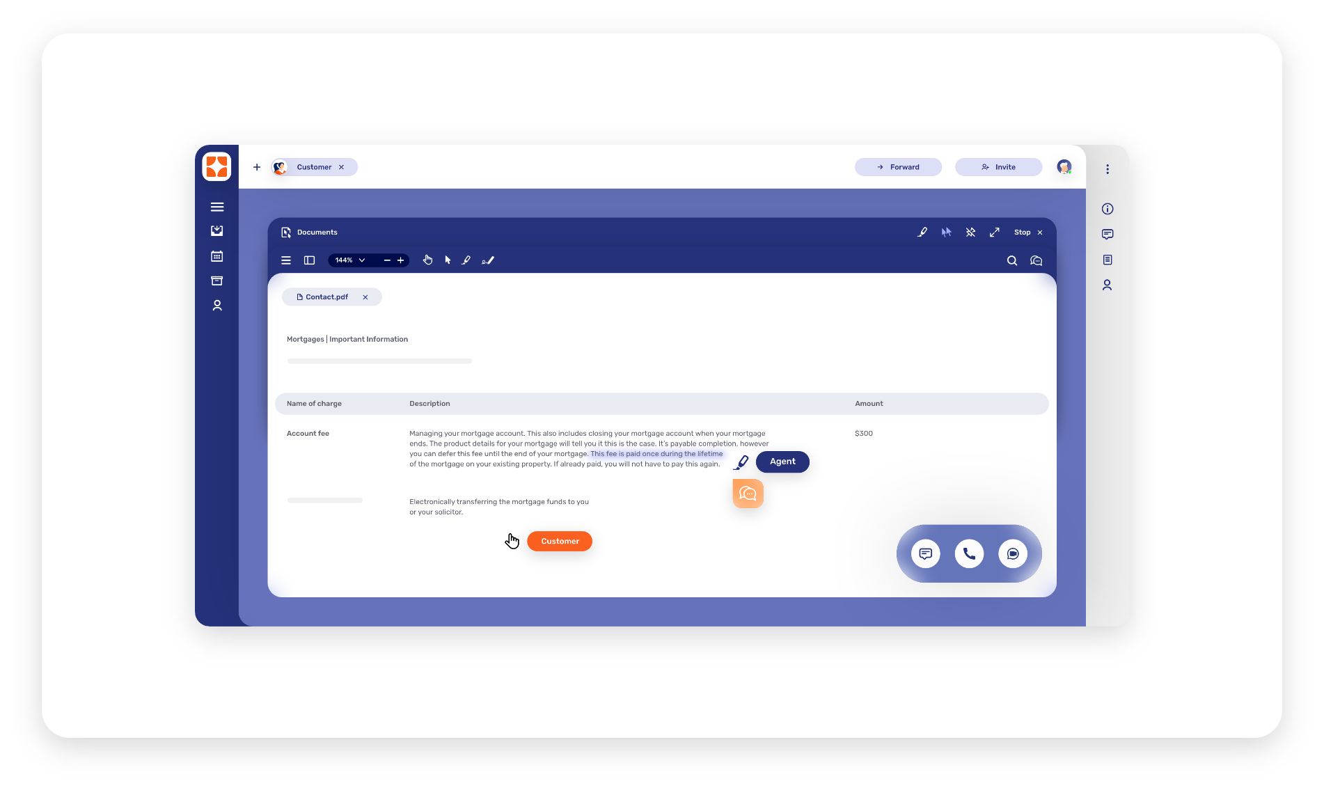 Throughout messaging conversations or during a Co-Browsing session, clients and advisors will often securely share documents or research through the channel. With Document Collaboration, the two parties can collaborate on any document type, including tools such as highlight, annotating, commenting, and more.
