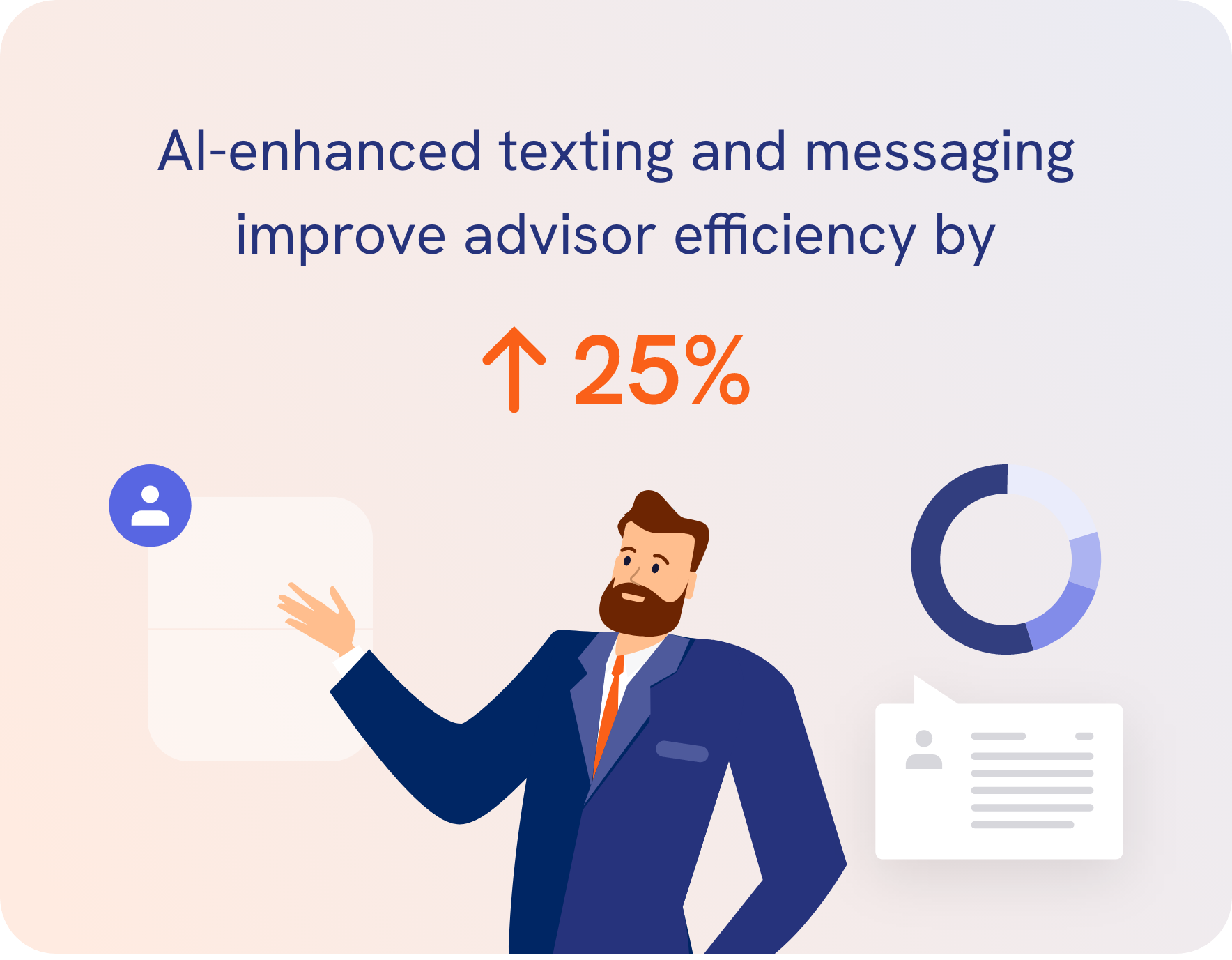 The cumulative effect of AI when properly implemented can result in substantial efficiency gains. Our own statistics found that simply adding AI-enhanced texting and messaging services can improve advisor efficiency by 25%.
