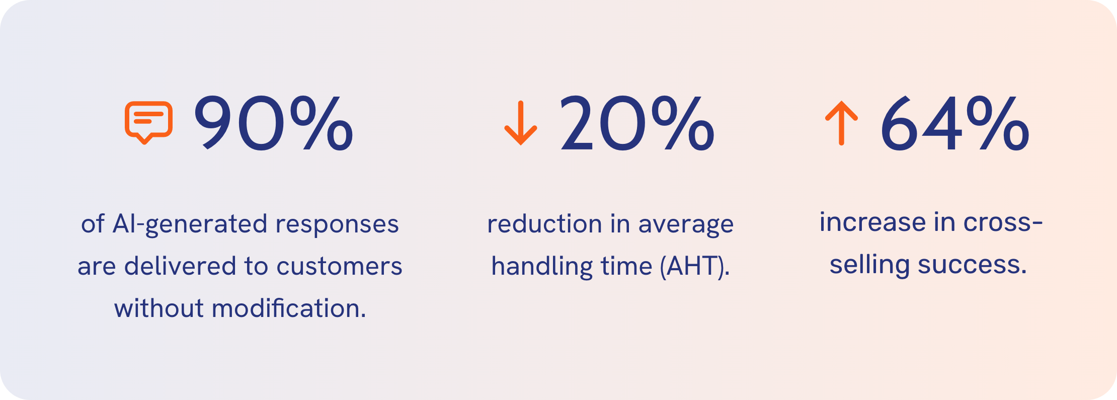 3. Generative AI for real-time support: Advisors receive AI-generated suggestions for customer inquiries, ensuring accurate responses and reducing errors (e.g., preventing incorrect product advice).